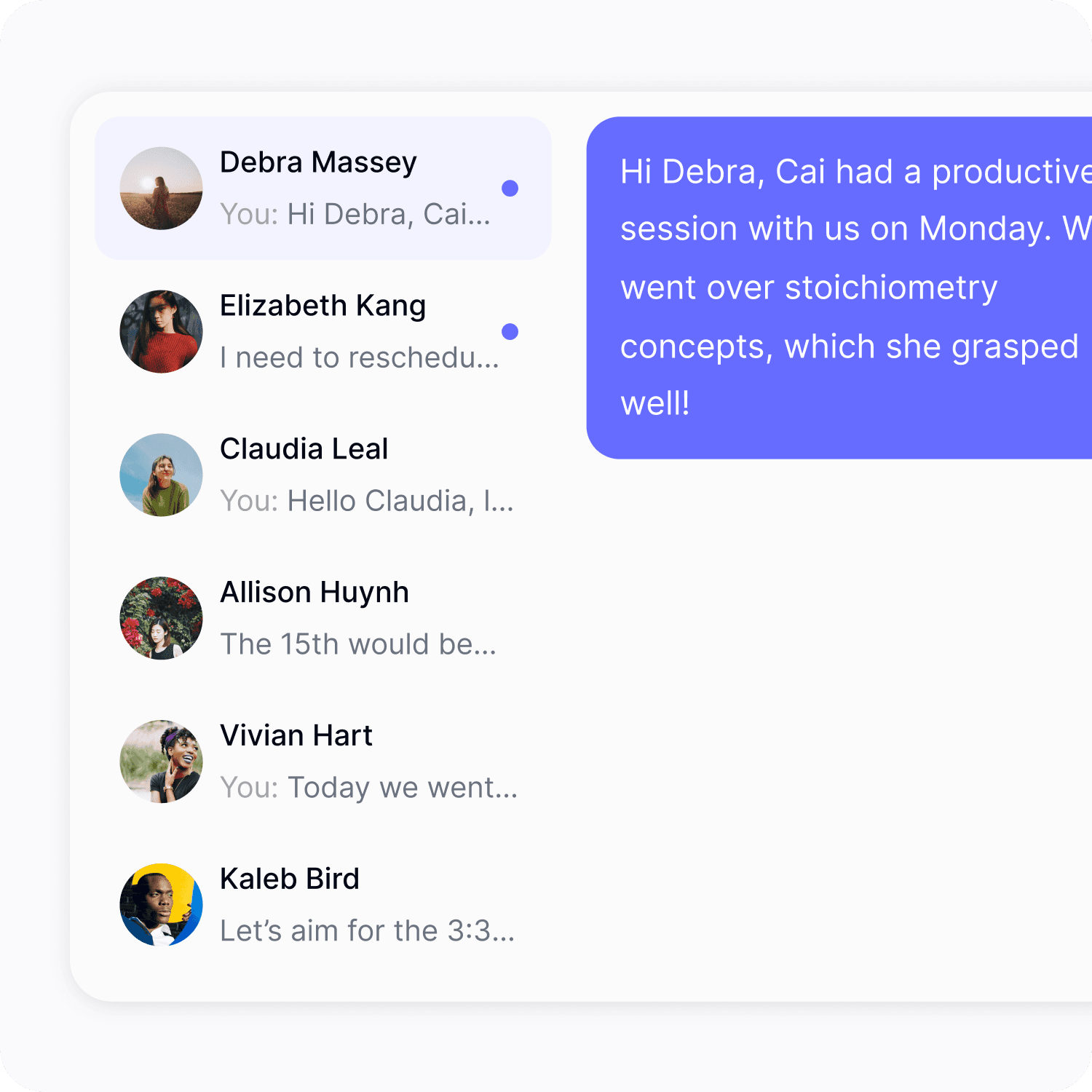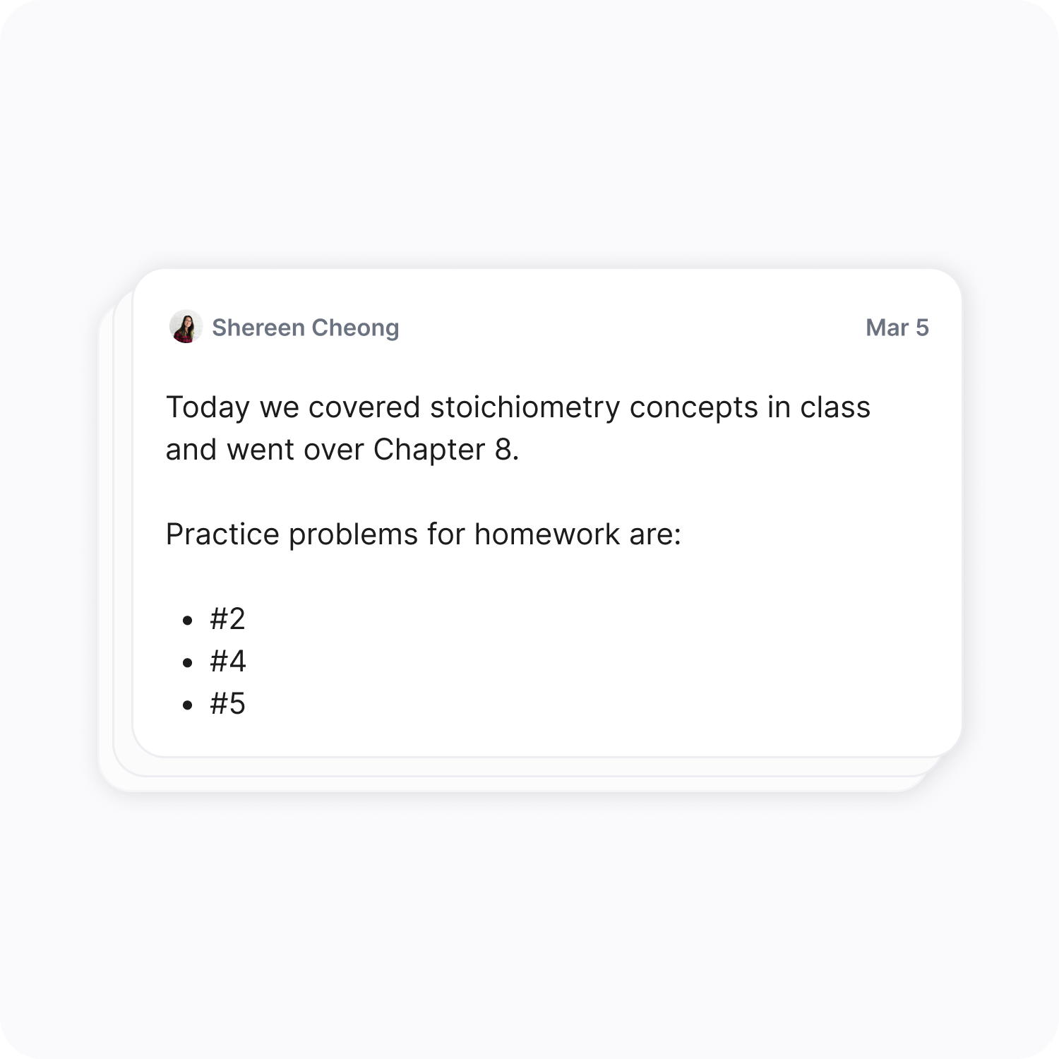 Keep everyone in the loop with updates, progress reports, and class announcements