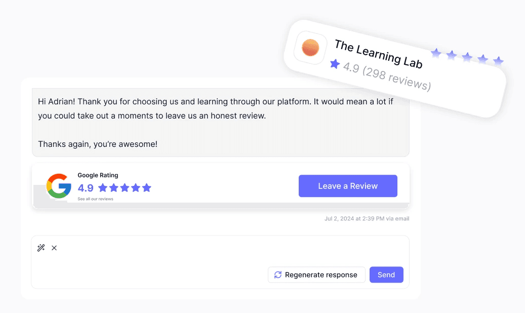 Noto requests feedback at key moments in the customer journey. This allows businesses to address concerns early and invite satisfied families to leave public reviews at the right time.