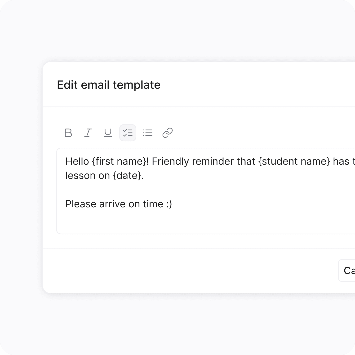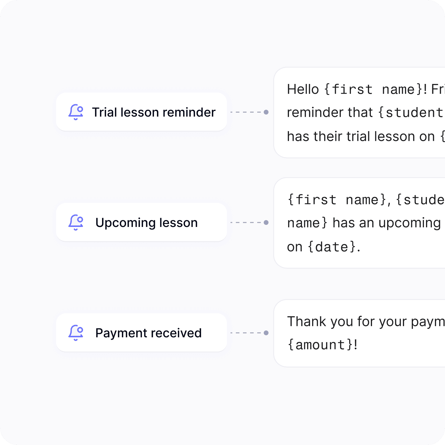 Automatically notify families about upcoming lessons, cancellations, or payments